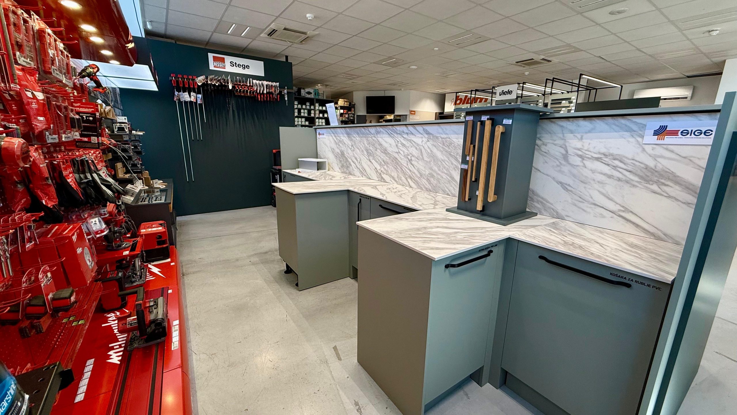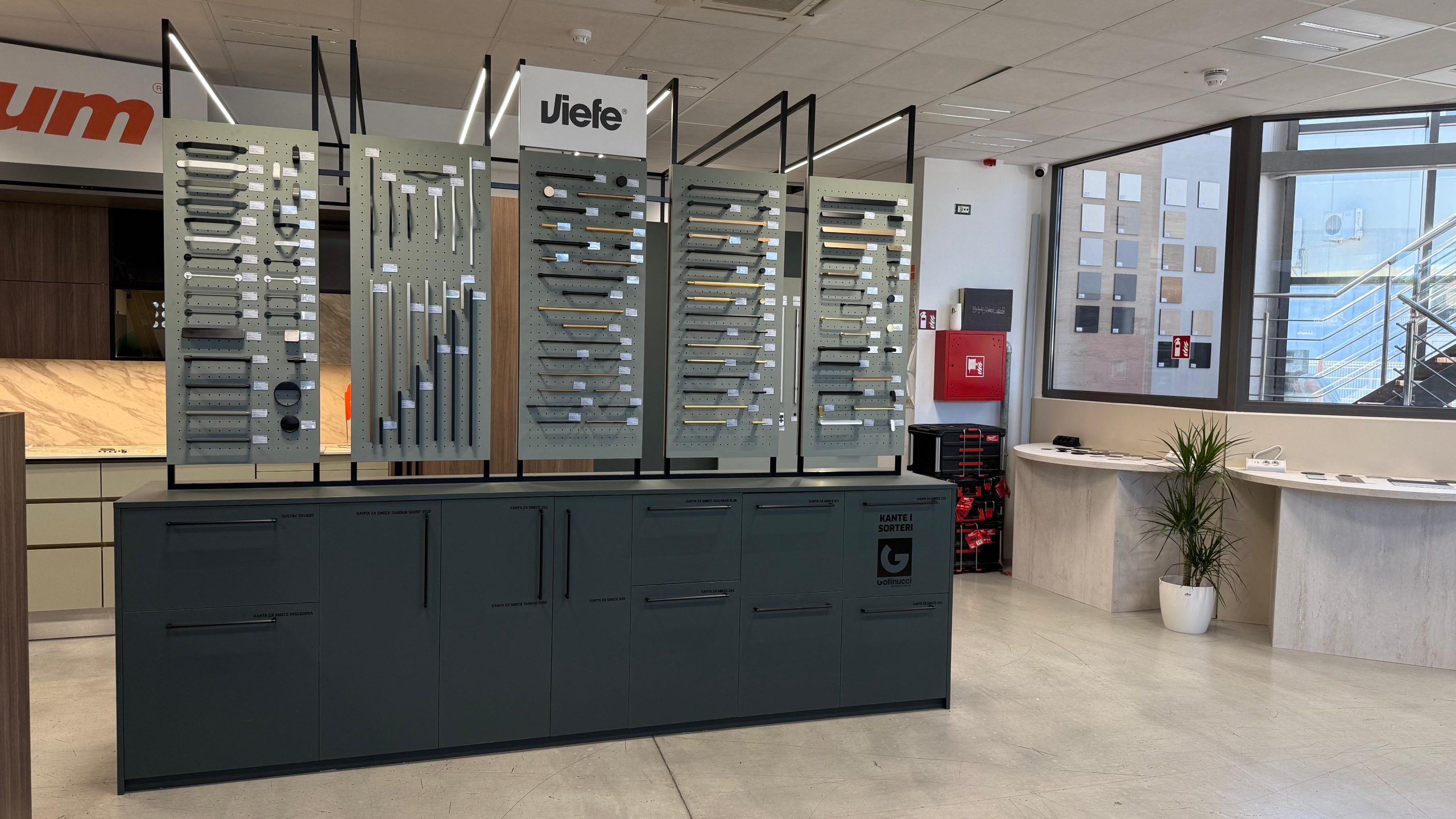 Poseban dio projekta posvećen je odjelu okova – prostoru koji je nekad bio skriven i rezerviran za profesionalce, a sada je pretvoren u inspirativnu zonu za sve ljubitelje detalja. Na jednom mjestu okupljene su sve mogućnosti otvaranja, zatvaranja, rasvjete i ugradbenih rješenja – od ručkica do nogica, od košara do utičnica – sve prezentirano u prepoznatljivim zelenim tonovima koji su zaštitni znak Iverpana.